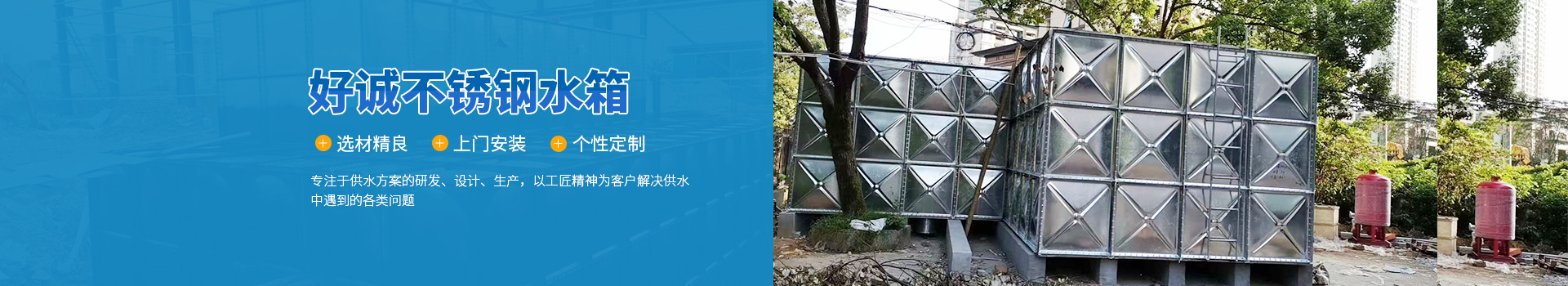 安徽好誠供水設(shè)備制造有限公司是一家集設(shè)計(jì)、研發(fā)、制造、銷售、售后為一體的專業(yè)不銹鋼水箱生產(chǎn)廠家,以科技力量立足于社會。近幾年來致力于供水設(shè)備、水箱的研究與開發(fā)。主要產(chǎn)品有:不銹鋼焊接式水箱、不銹鋼組合式水箱、BDF裝配式水箱、地埋式箱泵一體化設(shè)備、地上式箱泵一體化水箱、不銹鋼圓柱水箱、不銹鋼保溫水箱、SMC玻璃鋼水箱、熱鍍鋅水箱。對于傳統(tǒng)混凝土水箱的改造(即不銹鋼內(nèi)貼水箱),老舊水箱的拆除、更換、...